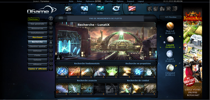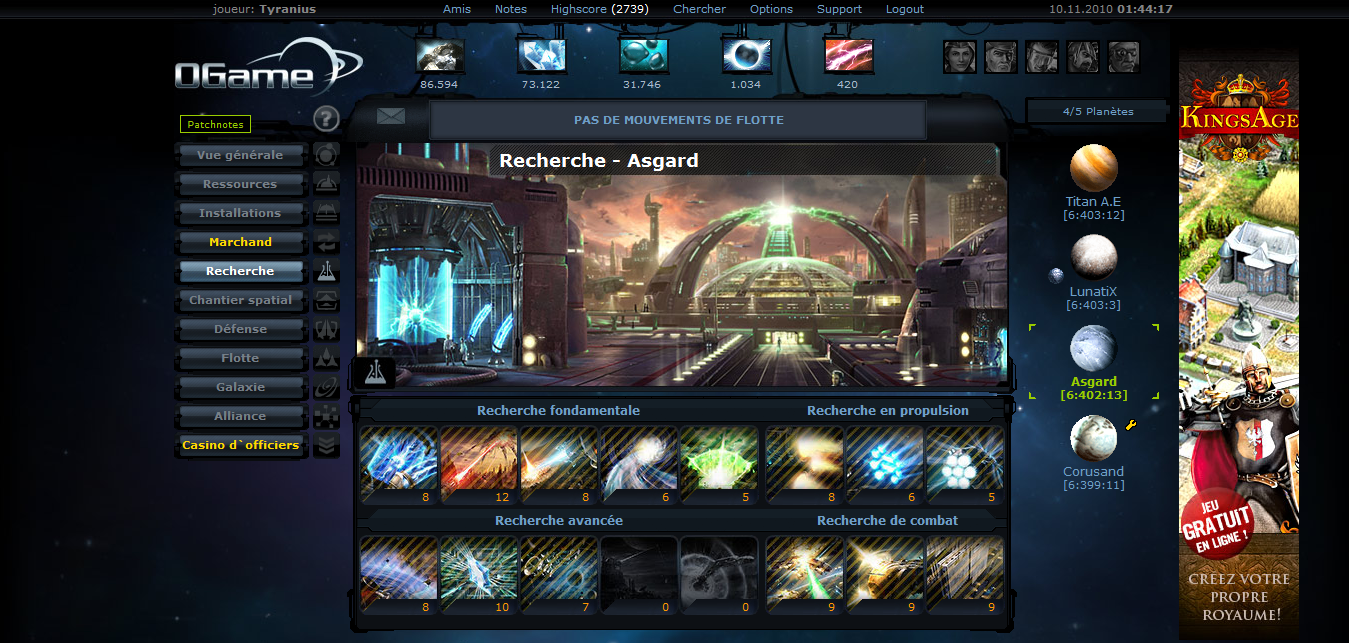 tou les vaisseaux son debloquer sauf le destructeur et l'etoile de la mort !! alliance top 50 de l'unvi ( membre tres sympa ) voila et merci j'attend vos reponse par MP